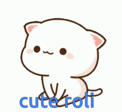 A cute cartoon cat, Roli, blinks and wags its tail, with the text "cute roli" displayed below.