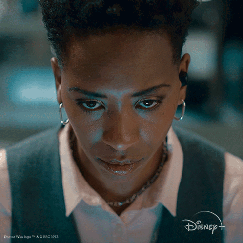 Harriet Arbinger, played by Genesis Lynea, rolls her eyes with a stern expression in a Doctor Who clip.