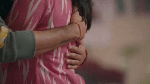 Shivangi Joshi shares a romantic hug with a man, both wearing pink attire.