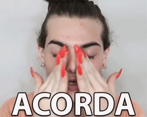 Romolo Cricca with long red nails covers his eyes, then reveals them as the word 'Acorda' appears.