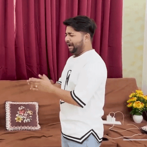 Vinay Samuel appears deeply upset, with tears in his eyes and hands clasped, in an emotional moment.