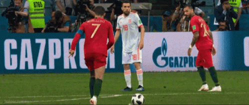Cristiano Ronaldo scores a spectacular free-kick goal against Spain in a thrilling football match.