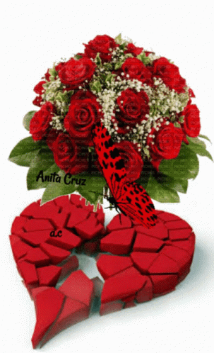 A vibrant bouquet of red roses, a red butterfly, and a broken red heart, with 'Anita Cruz' visible.