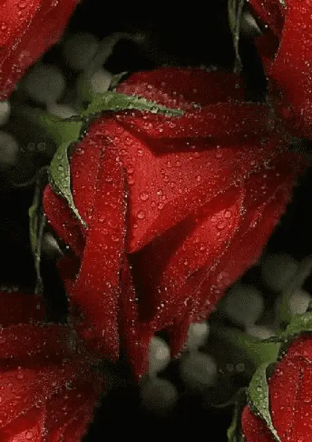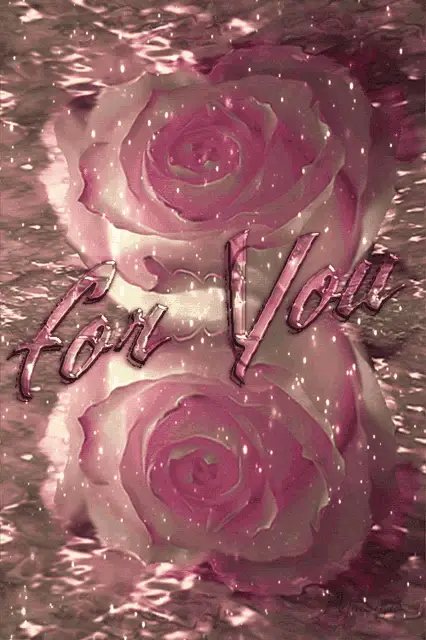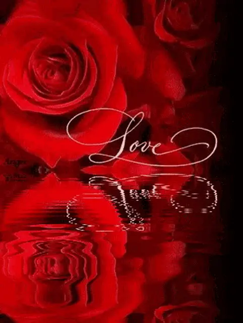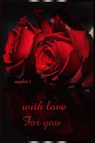 Two glittering red roses with water droplets, reflecting on a dark surface, featuring the message 'with love For you'.