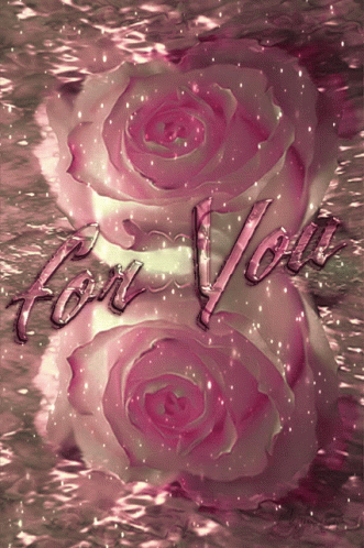 Two pink roses with glitter effects are reflected in water, featuring the text 'For You'.