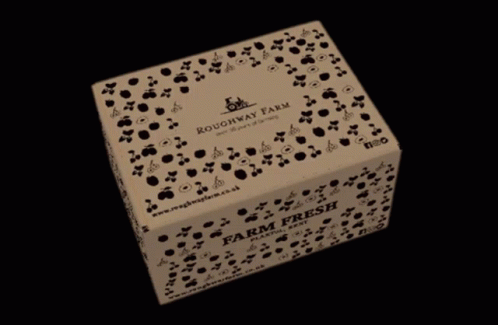 A white box from Roughway Farm, featuring a cherry and fruit design, labeled 'Farm Fresh' from Plaxtol, Kent.