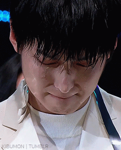 An emotional close-up of Rowoon or Zuho crying, with tears visible on their face during a poignant moment.