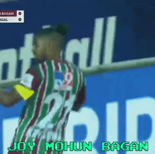 Roy Krishna celebrates a goal for Mohun Bagan in the Kolkata Derby, showing his passion for the club and fans.