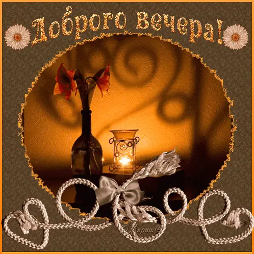 Lit red candle with melting wax next to dark red roses on a black background, featuring 'Good Evening' text.
