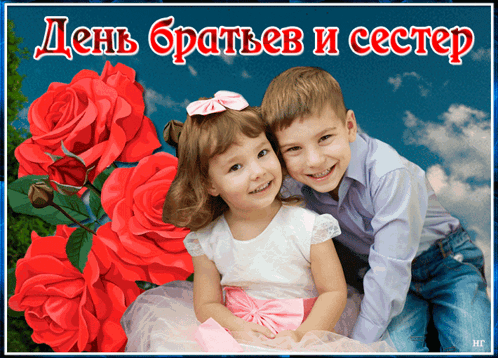 A young boy and girl smile together, surrounded by vibrant red roses, celebrating Siblings Day.