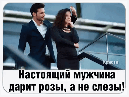 A man surprises a woman with a bouquet of red roses, embodying the sentiment 'A real man gives roses, not tears!'