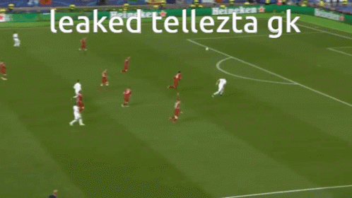 A football match on a green field with players, featuring the text 'leaked tellezta gk' overlay.