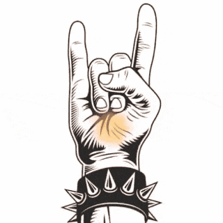An animated hand making the rock on sign, with 'ROCK SONG' text appearing, set against a fiery background.