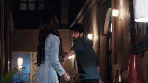 Rudra and Preesha (Ru Sha) share a tender, romantic moment, with Rudra embracing Preesha.
