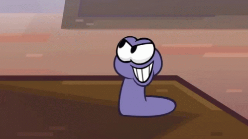 Om Nom, the purple worm from Om Nom Stories, shows a rude and disgusted expression with his tongue out.