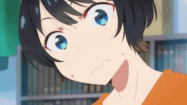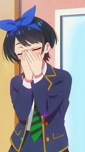 Ruka Sarashina from Rent-A-Girlfriend makes a cute heart pose, smiling brightly in her school uniform.