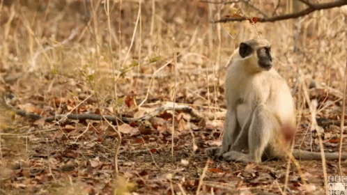 A monkey quickly scurries through dry grass and leaves in the African wilderness, captured by BBC Africa.