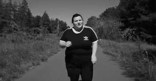 Ukrainian singer Alyona Alyona running and wiping her mouth on a road, captured in black and white.