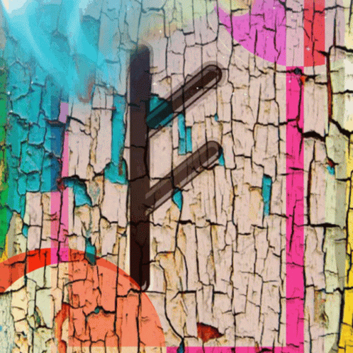 Animated Fehu rune by Sierzart on a vibrant, cracked wall with sparkling effects and falling petals.