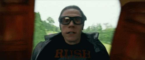 A man in sunglasses and a black jacket runs at incredible speed, blurring the background in an X-Men scene.