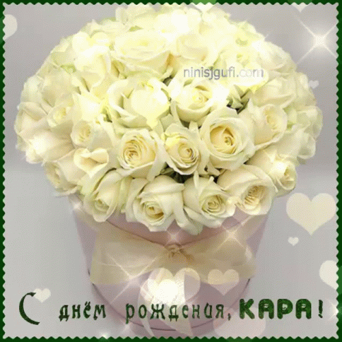 A beautiful bouquet of white roses in a decorative box, celebrating Kara's birthday.
