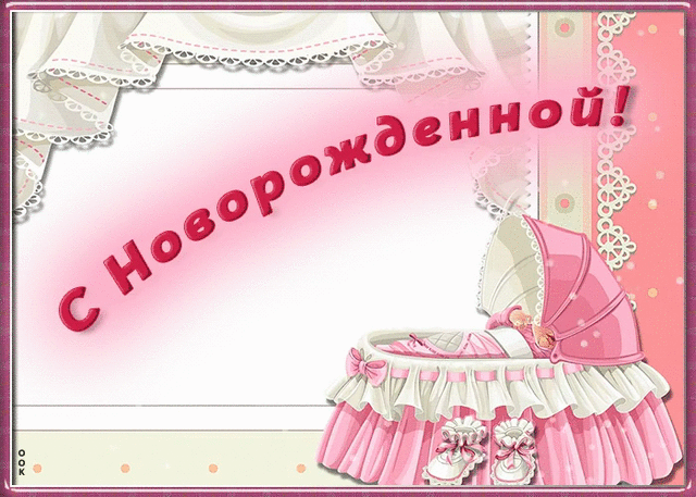 «С новорожденной!» анимированная открытка