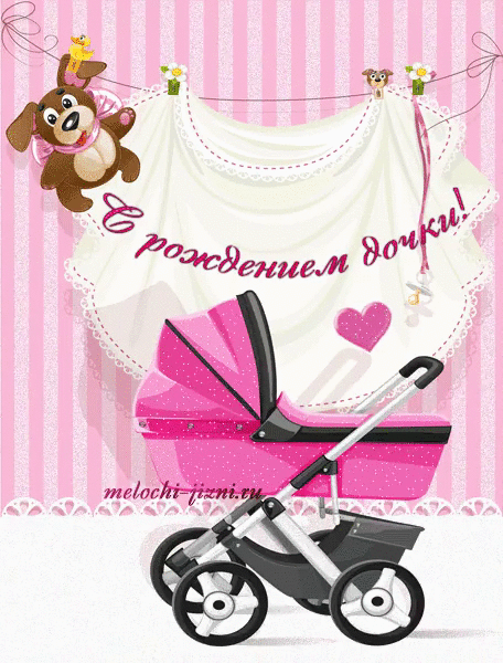 «С новорожденной дочки!» мерцающая открытка