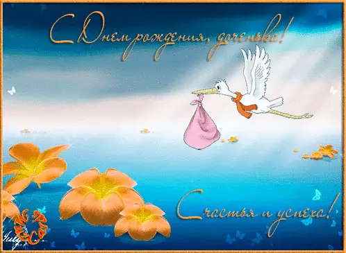 «С новорожденной!» мерцающая открытка с аистом