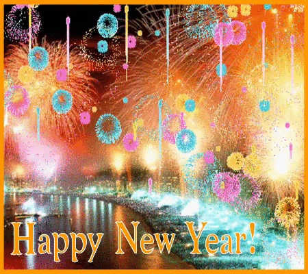 «С новым годом!» открытка ярким салютом
