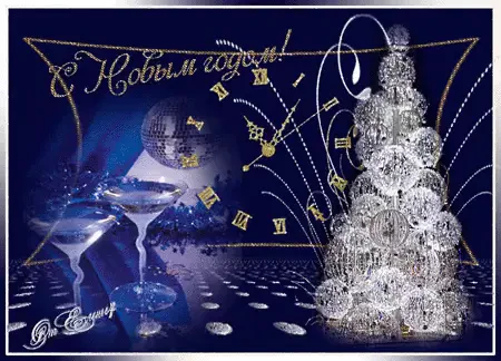«С новым годом тигра 2022!» открытка с курантами