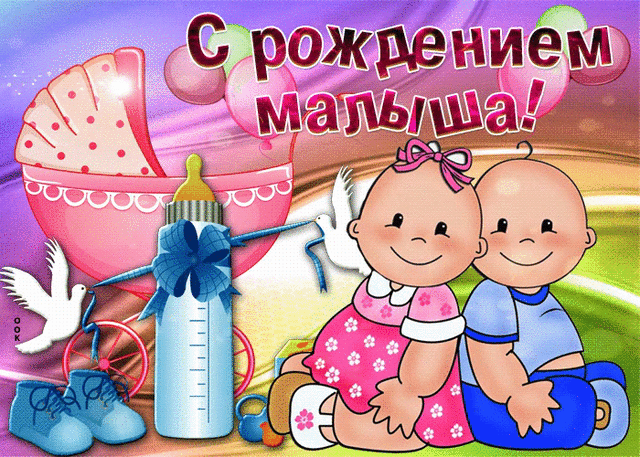«С рождением малыша!» красивая, яркая открытка