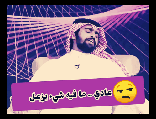 Saad Alkaltham reacting with a caption "It's okay.. there's nothing to be upset about" while wearing traditional Saudi attire.