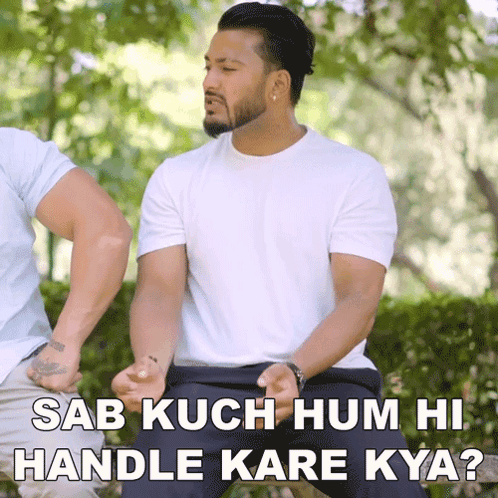 Varun Sahu looking frustrated with the Hindi text "Sab Kuch Hum Hi Handle Kare Kya?" overlaid on the video.
