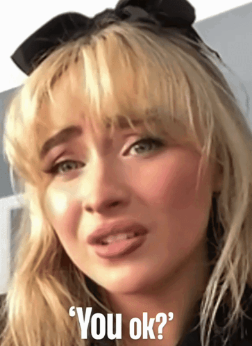 Sabrina Carpenter reacts with a questioning 'You ok?' expression, showing annoyance or disbelief.