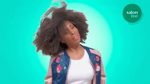 Sabrinadibynis celebrates with energetic dance, showcasing her beautiful afro hair for Salon Line.