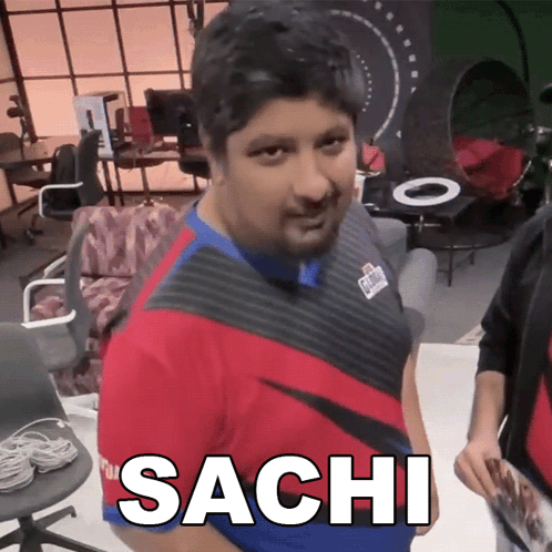 Rahul Hinduja, associated with Global Esports, is seen wearing a red and blue shirt with 'Sachi' written on it.