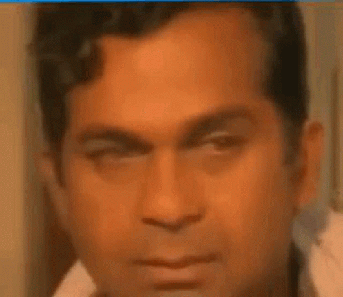 A close-up of actor Brahmanandam's face, showing a serious and somewhat sad expression.