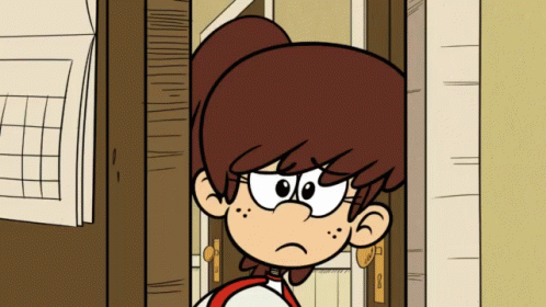 Lynn from The Loud House stands in a doorway with a sad expression, her eyes looking downcast.