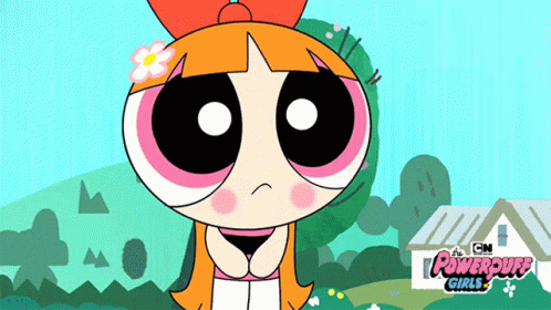 Blossom from The Powerpuff Girls appears sad and troubled, possibly due to Valentine's Day, in this animated clip.