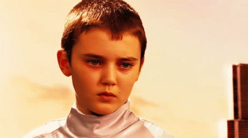 Cameron Bright, a young boy, looks down with a sad and apologetic expression, wearing a white turtleneck.