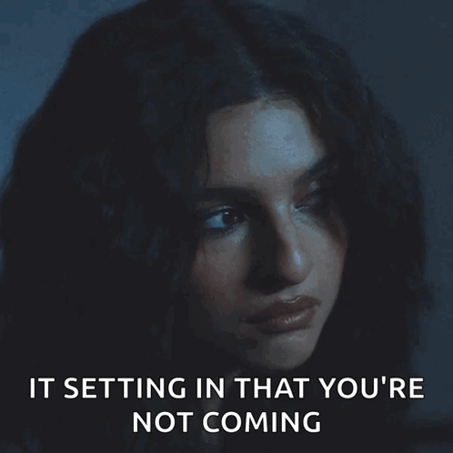 Renforshort looking down, feeling dejected as the caption 'It setting in that you're not coming' appears.