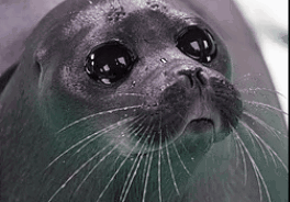 A sad-looking seal with large eyes and a scrunched face, resembling a Baikal seal.