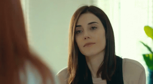 Asya from Sadakatsiz looks into a mirror with a determined expression, captioned 'Of Course Not'.