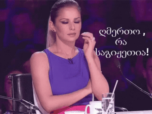 A woman reacts with a facepalm, expressing frustration with the Georgian caption 'God, what a madhouse!'