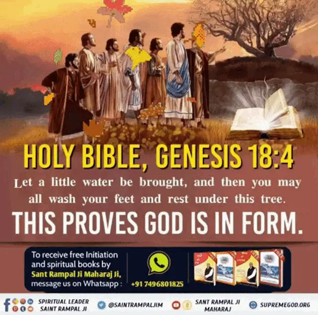 Saint Rampal Ji Maharaj shares a Holy Bible verse from Genesis 1:27, emphasizing God is in form, with an open book.
