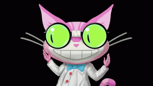 Professor Genki, the pink and white cat character from Saints Row, with large green glasses and a bow tie.
