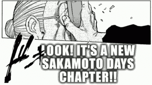 A new Sakamoto Days chapter is announced with a manga panel featuring a character.