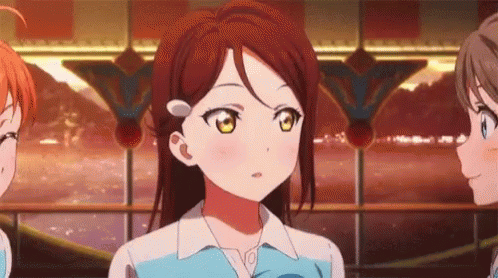 Sakurauchi Riko and her Aqours friends share a cheerful, smiling moment in this anime scene.