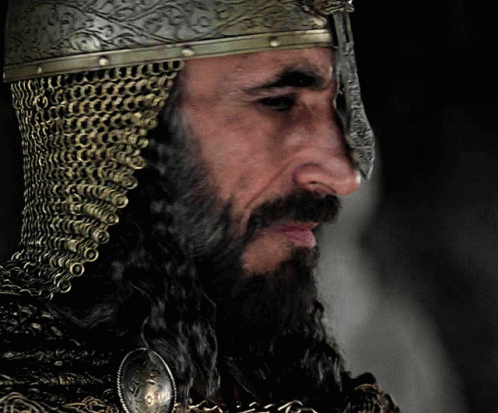 A close-up of Saladin, the historical figure, with a thoughtful and contemplative expression.