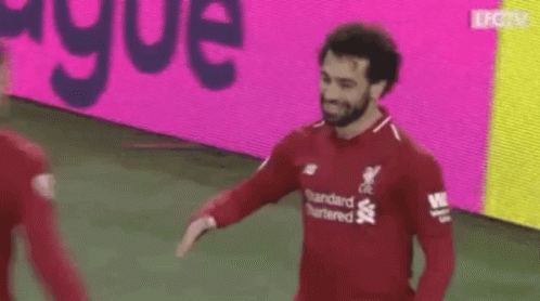 Football players Salah and Virgil shake hands on the field after a game.